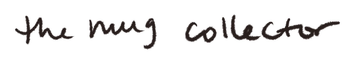 My roommate regularly jokes about my excessive amount of mugs and I know that I have a lot but I really thought that 20+ mugs was a normal amount but I’m starting to realize I have a few more than the average person. Last week I was making coffee while listening to Haley Heynderickx and her song The Bug Collector was playing and I thought to myself that I’m just a mug collector.